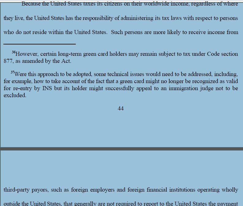 The report which is now over 15 years old, portended the future we have today with FATCA and the multi-prong efforts to ensure that U.S. citizens and LPRs residing overseas comply with U.S. tax law –