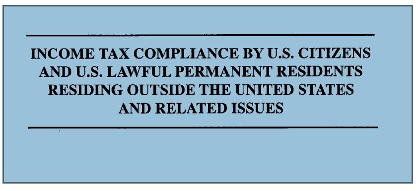 To better understand how even those in Congress at the U.S. federal government (in 1998) did not have a good understanding of the expansive global application of the tax law applicable to individuals residing outside the U.S., see – Income Tax Compliance By U.S. Citizens And U.S. Lawful Permanent Residents Residing Outside The United States And Related Issues