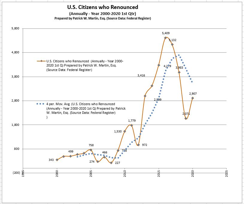See previous posts regarding the numbers of USCs who were renouncing at an increasingly rapid pace starting at just around and just before the year 2010. The FATCA transparency laws were passed in 2010 and so too were more international information reporting requirements (IRC 6038D) and strong enforcement efforts overseas by the IRS and DOJ Tax Division; which could be part of a cause and effect consequence? See, CHAPTER 4—TAXES TO ENFORCE REPORTING ON CERTAIN FOREIGN ACCOUNTS (§§ 1471 – 1474)