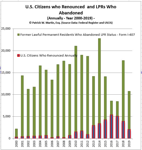 Subsequent posts will discuss the new trend of how relatively fewer lawful permanent residents (“LPRs”) are formally abandoning their status compared to USCs who formally renounce. This is true even though the number of USCs renouncing is in decline.