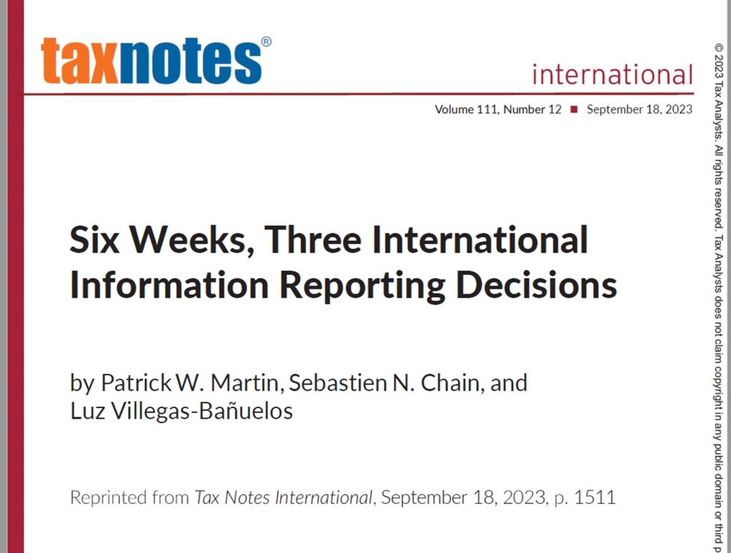 Patrick W. Martin, et. al – Six Weeks, Three International Information Reporting Decisions (international taxnotes; September 18, 2023)